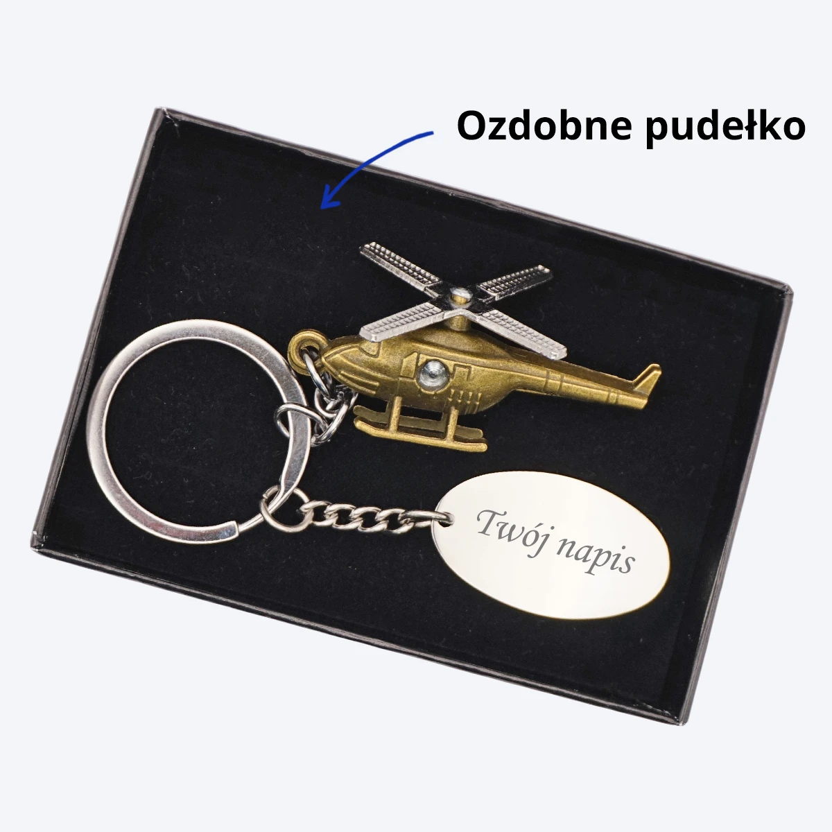 Największy atut? Owalna blaszka, na której można wykonać grawer dopasowany do odbiorcy. Niezależnie, czy ma to być imię i stopień wojskowy, data przysięgi, numer jednostki, pseudonim czy po prostu hasło typu „Siła i Honor” – wszystko zależy od Ciebie. Brelok z helikopterem i własnym grawerem sprawia, że gadżet jest dla konkretnej osoby. Każdy brelok przygotowywany jest indywidualnie, dlatego nadaje się idealnie jako prezent dla żołnierza, męża, taty, dziadka. kolegi z kompanii, dowódcy albo na pożegnanie po latach wspólnej służby. Grawer wykonujemy precyzyjnie na trwałej, stalowej powierzchni, dzięki czemu całość prezentuje się profesjonalnie.