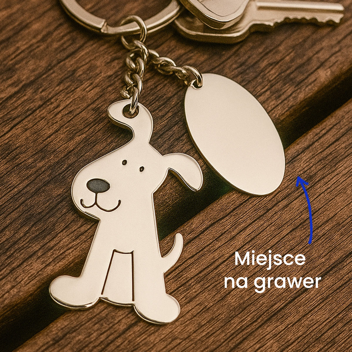 Brelok pieska z grawerowaną zawieszką świetnie sprawdzi się jako personalizowany prezent dla miłośnika piesków. Zawieszka w kształcie wesołego pieska doda charakteru kluczom, torbie lub plecakowi, natomiast zawieszka z grawerem będzie osobista pamiątką.