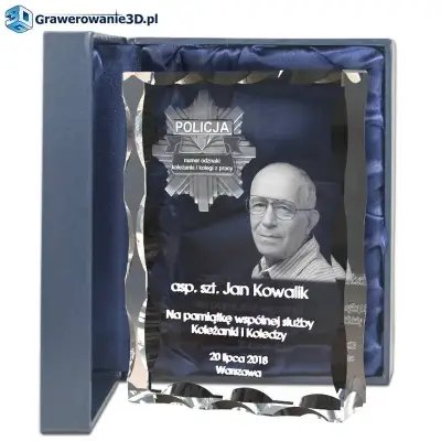 Zestaw doskonale sprawdzi się jako podziękowanie za lata służby lub wyjątkowa pamiątka dla odchodzącego na emeryturę funkcjonariusza. Personalizacja pozwala nadać prezentowi osobiste podziękowania, nadając mu szczególną wartość. Każdy element zestawu został starannie wykonany, aby prezentował się estetycznie zarówno podczas uroczystości, jak i jako pamiątka na długie lata. Karafka policyjna z grawerem to doskonały wybór na uroczyste pożegnanie w służbach policyjnych od koleżanek i kolegów. Oprócz karafek policyjnych polecamy również szklaną statuetkę z odznaką policyjną 3D oraz numerem ID na odejście funkcjonariusza.