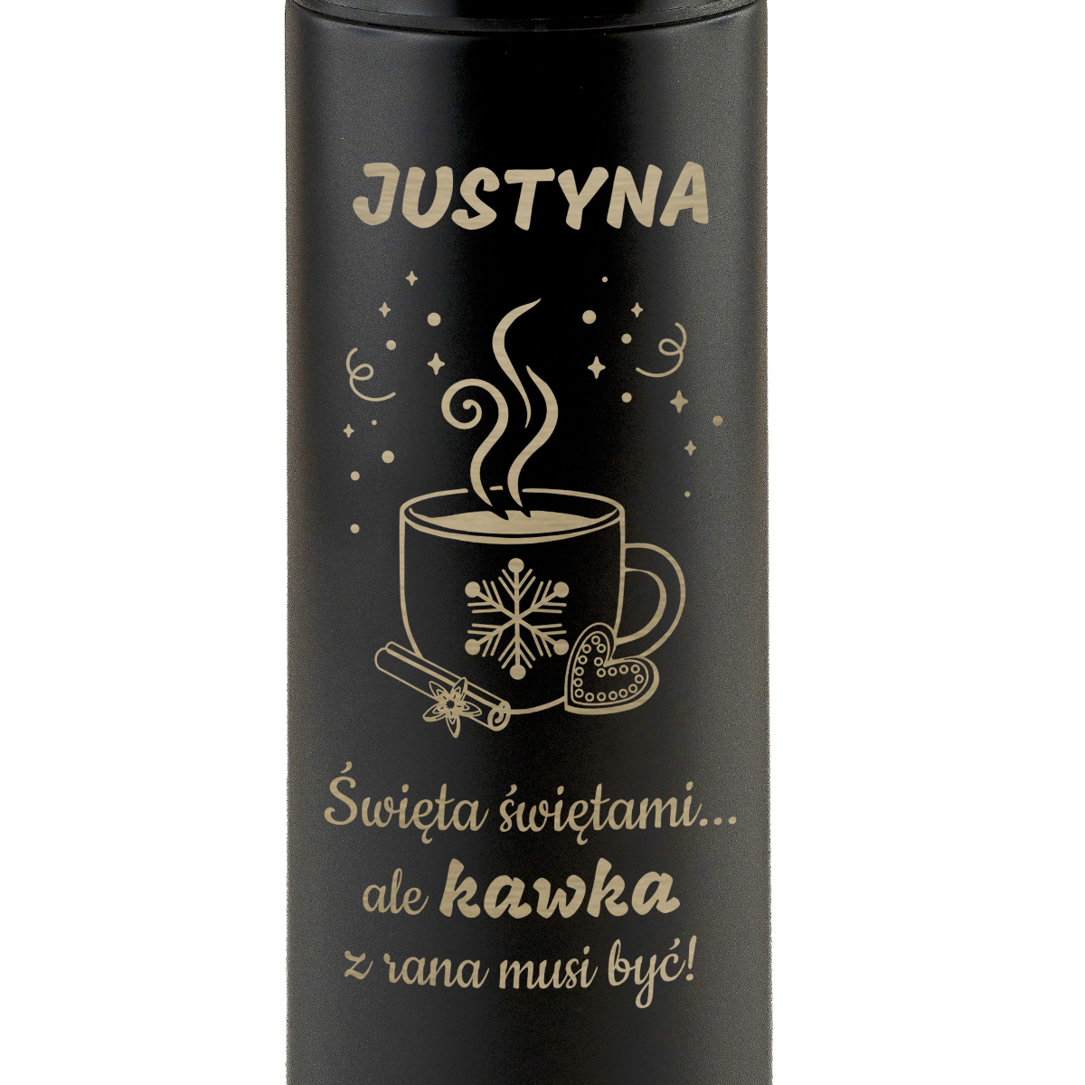 Święta, zimowe poranki i gorąca kawa – czy to nie brzmi jak idealne połączenie? Świąteczny termos z grawerem to sposób na wprowadzenie magii świąt do codziennych rytuałów. Z personalizowanym grawerem imienia i uroczym napisem „Święta świętami... ale kawka z rana musi być!” stanie się nie tylko praktycznym gadżetem, ale też świetnym pomysłem na prezent na święta.